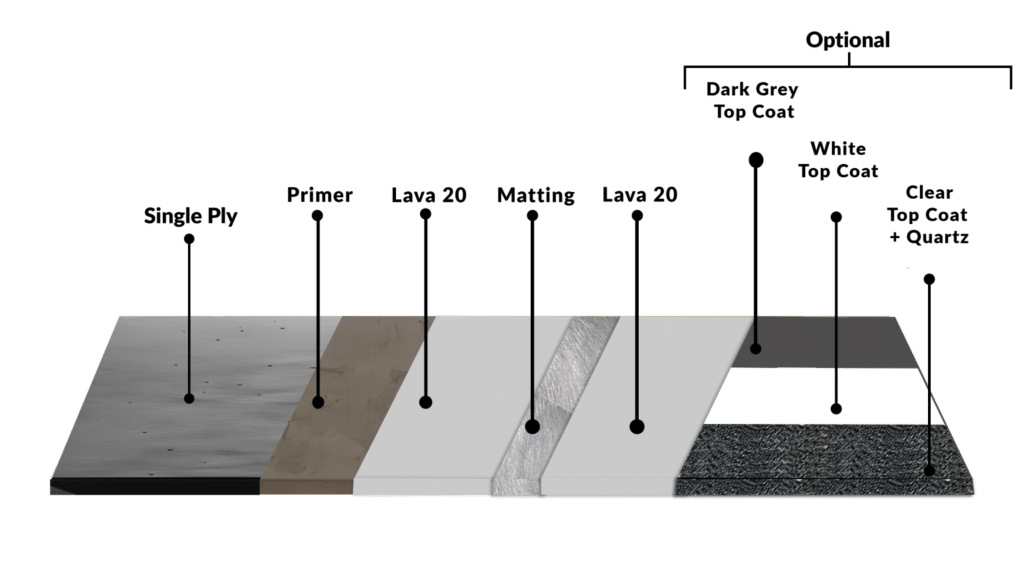 Optimize your Single Ply Roofing construction projects with Lava 20 Waterproofing systems—ideal for lightweight, swift, and cost-effective builds. Perfect for flat roofing with weight considerations, these membranes boast a lifespan exceeding 25 years. Elevate efficiency and durability in one streamlined solution. Fully reinforce the Lava 20 system on single ply membranes with matting for best results.
